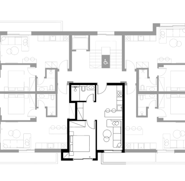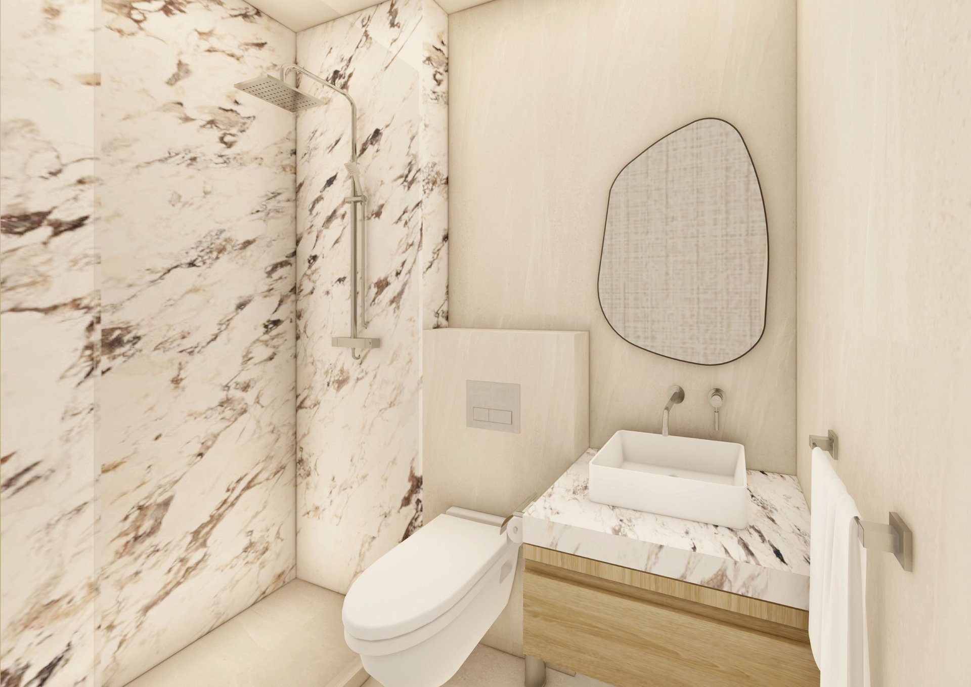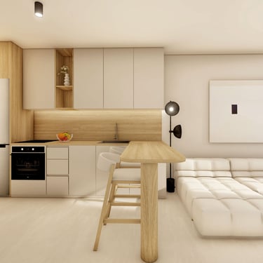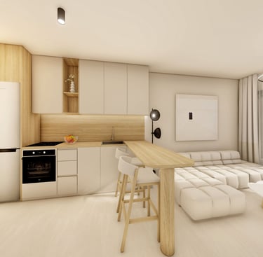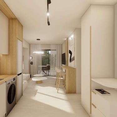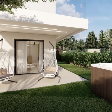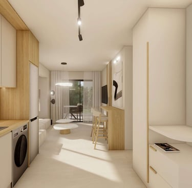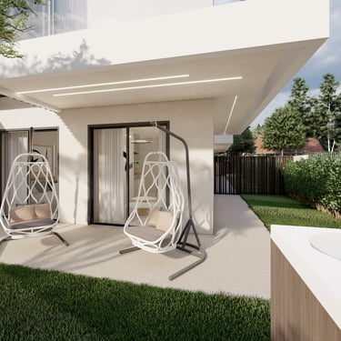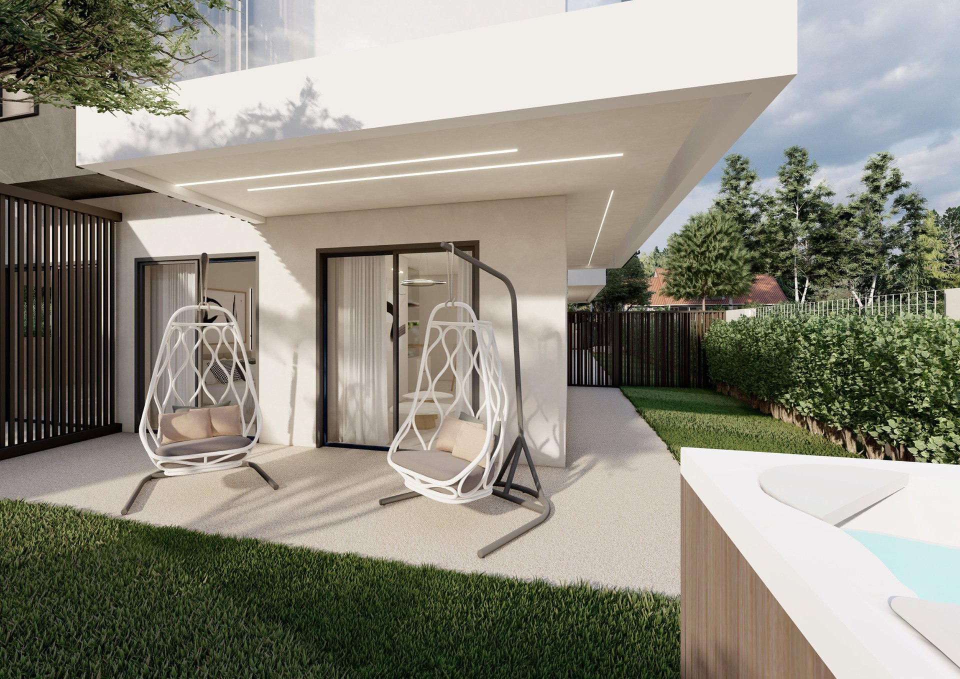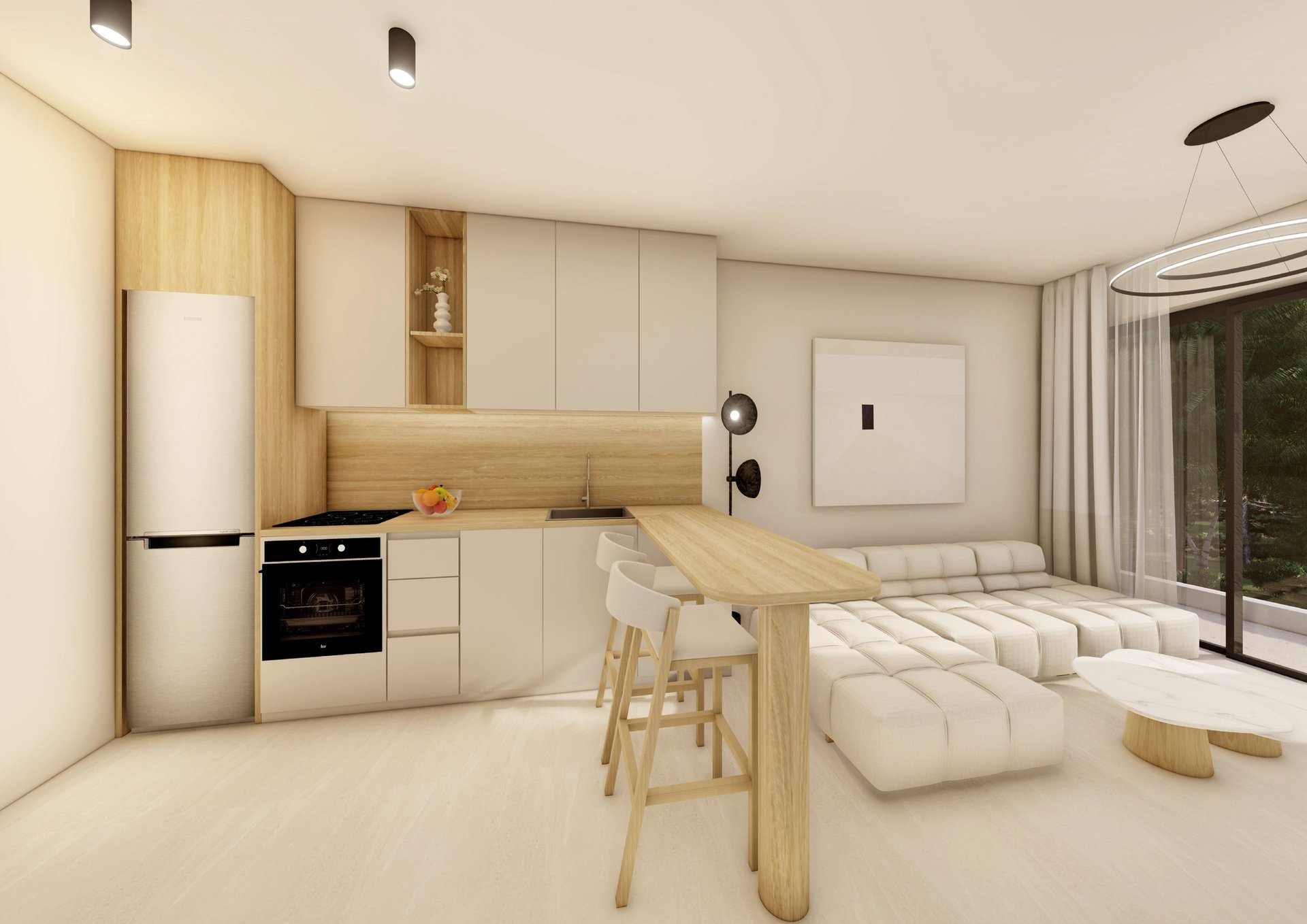 Offering thoughtfully designed one-bedroom apartments; each with an open living area, full kitchen, and private balcony. Ground-floor units include access to a private pool. On-site surface parking is available near the main entrance, and daily essentials, cafés, and the town’s seafront are all within a short walk.
